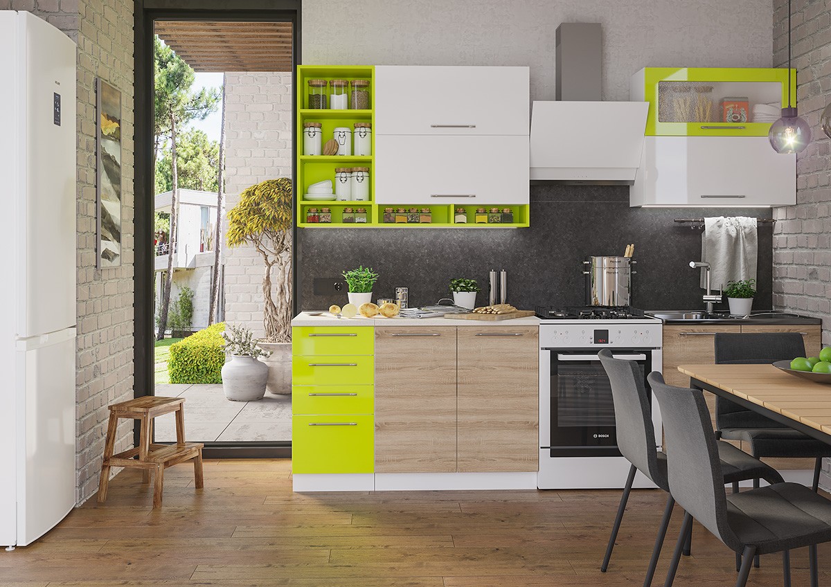 —Кухонный Гарнитур Софья 2000 мм Дуб Сонома/Белый + Лайм